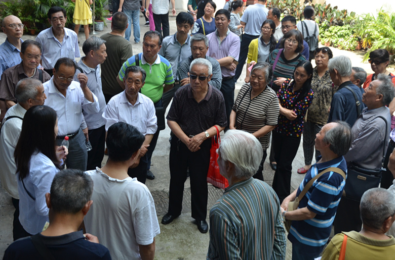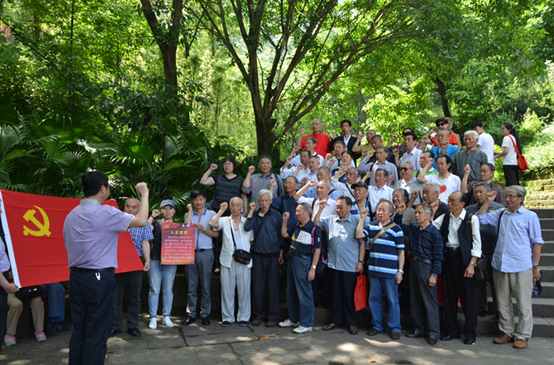 在白公館,離退休黨員面對鮮紅的黨旗,高舉右手,莊嚴地重溫入黨誓詞,字句鏗鏘,表達了全體黨員堅定共產主義理想,雖然離開了工作崗位,仍然支持單位發展,擁護國家改革發展,堅定黨的發展信念。